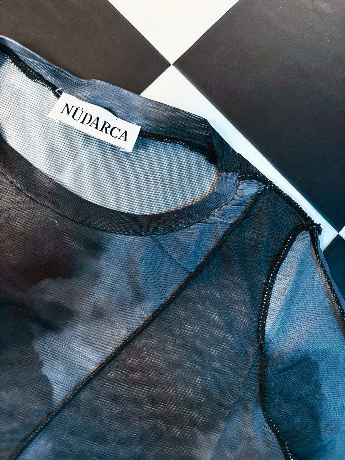 SUNSET VEIL MESH TOP (サンセット・ヴェイル・メッシュトップ) — 夕陽を透かすようなグラデーションと、繊細な透け感を纏うシースルートップ。